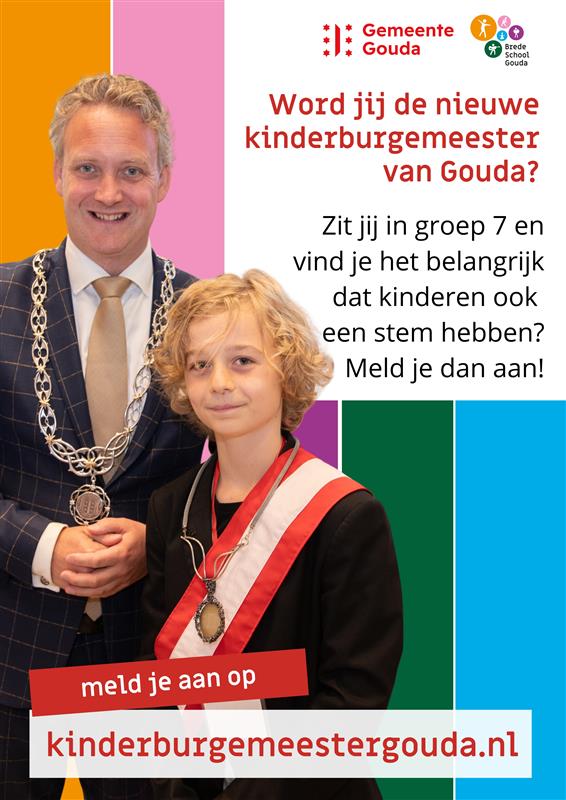 Burgemeester Pieter Verhoeve en het kindercollege van Gouda doen binnenkort een oproep aan alle kinderen van groep 7. Ben jij de volgende kinderburgemeester (m/v) van Gouda?